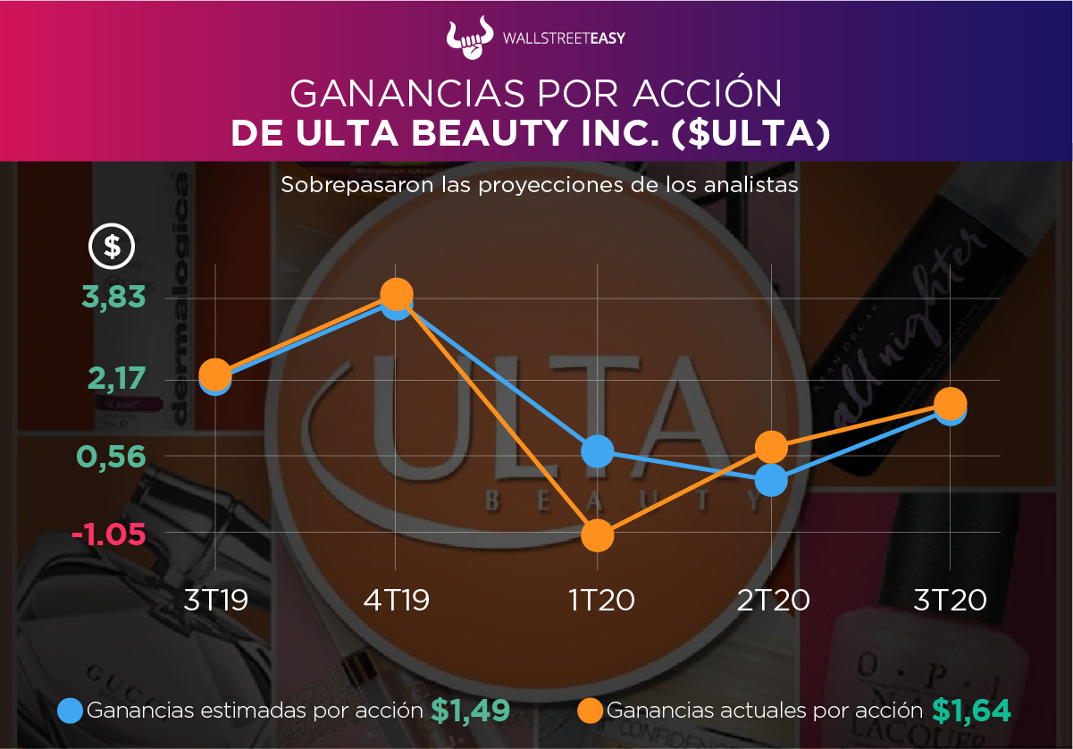 - Las ventas mismas tiendas de Ulta se desaceleraron en octubre debido a que se redujeron las promociones, y advirtió que para el cuarto trimestre, las ventas podrían seguir perdiendo impulso y estar entre –12% y –14% año tras año. Además, indicó que los márgenes pueden permanecer bajos en el año fiscal 2021.