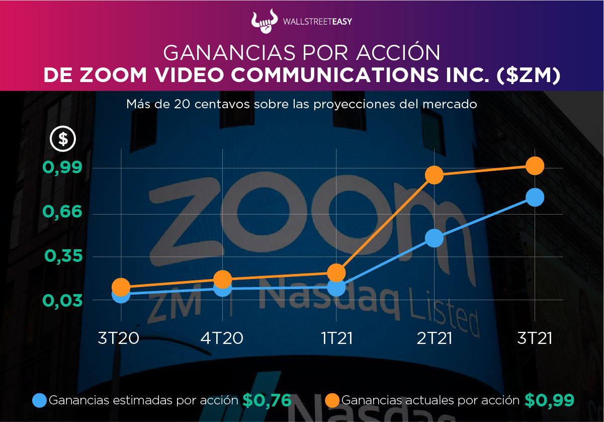 - Para el cuarto trimestre, Zoom prevé ingresos de entre $806M y $811M, y ganancias por acción que estén entre $0,77 y $ 0,79. A principios de año, el precio de sus acciones se situaban en $71,90, pero con el enorme crecimiento que ha experimentado la compañía en medio de la pandemia, se encuentran actualmente sobre los $470.