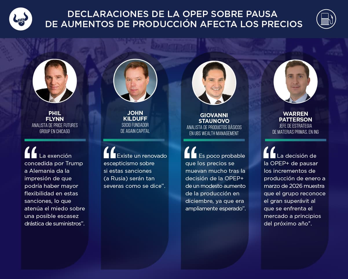 OPEP+ sorprendió a los mercados petroleros al anunciar una pausa en su regreso programado a los recortes voluntarios a lo largo del primer trimestre de 2026, tras acordar un pequeño aumento de 137.000 bpd para diciembre de 2025: