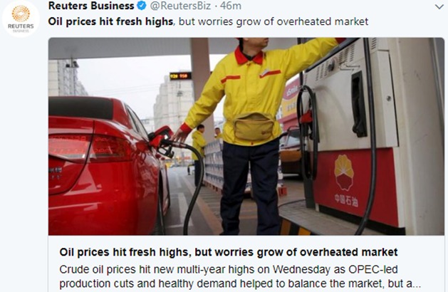 El precio de este crudo referencial ha reportado un ascenso de 11% desde mediados de diciembre, en gran parte por el acuerdo de la OPEP junto a Rusia de mantener los recortes en la producción de petróleo por todo el 2018.