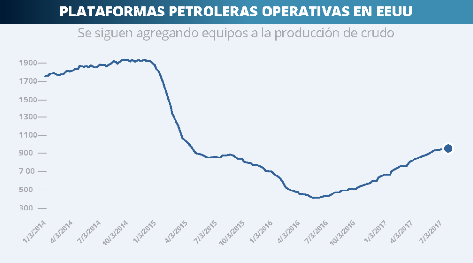 Los actuales precios no han sido una limitante para el empuje de los esquistos. El crecimiento constante de plataformas operativas da cuenta de una realidad de oferta para los próximos meses.
