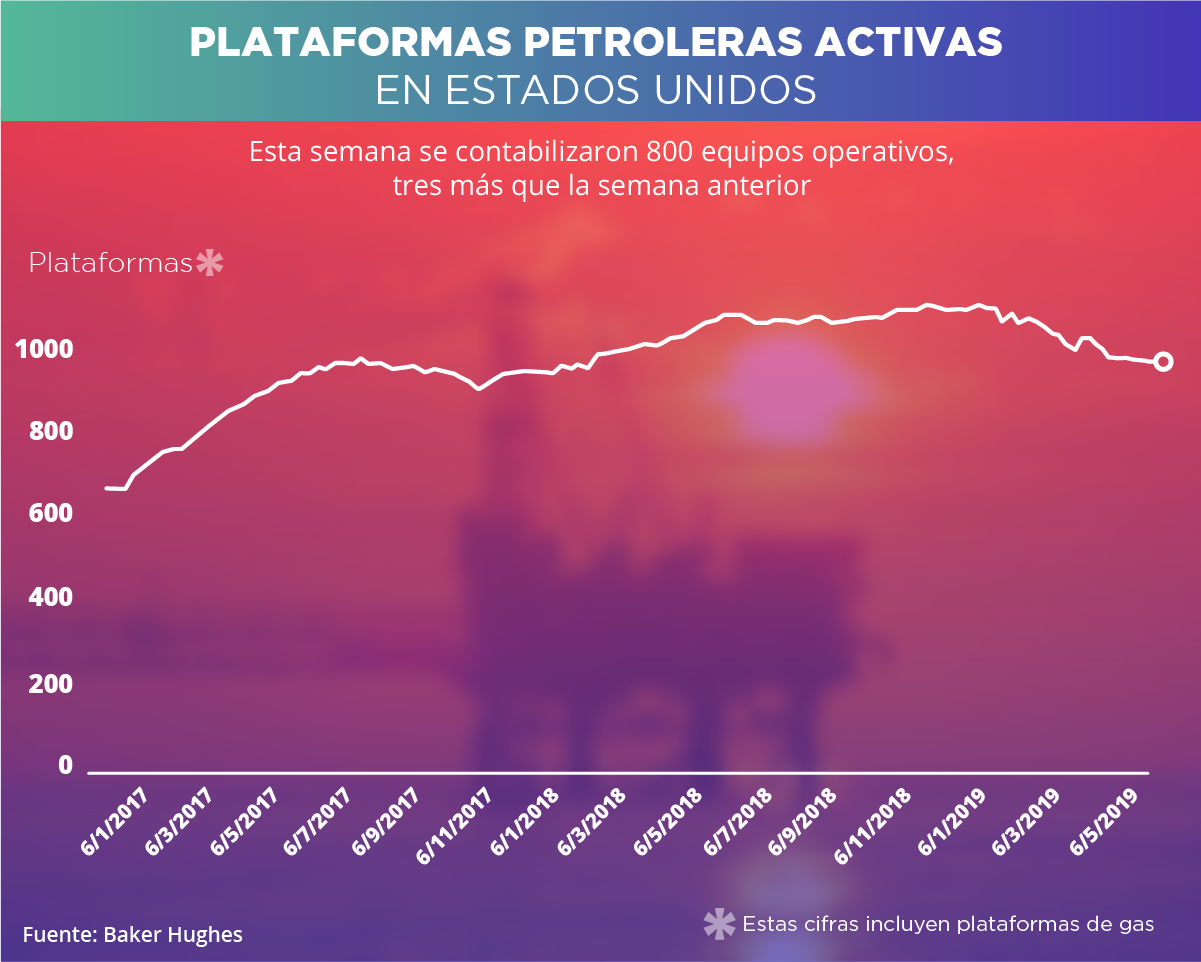 De acuerdo con información de Baker Hughes, actualmente en EEUU se encuentran 983 equipos activos (incluyendo los de gas). En la actividad petrolera se contabilizaron 800, tres más que la semana anterior. En las operaciones de gas hay 184 equipos operativos, dos menos que hace siete días. Hace un año estaban activas 1060 plataformas.