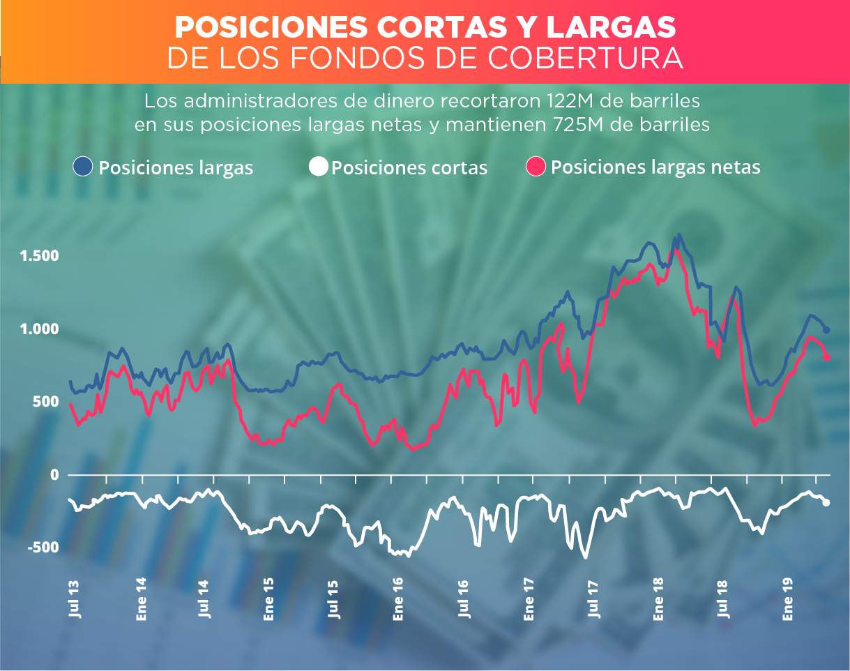 Los gestores de fondos vendieron Brent (41M de barriles), NYMEX e ICE WTI (38M), gasolina de EEUU (11M), combustible de calefacción de EEUU (12M) y diésel europeo (20M). Los fondos han vendido 186M de barriles de futuros y opciones de petróleo en las cinco semanas desde el 23 de abril, luego de comprar 609M de barriles en las 15 semanas anteriores desde el 8 de enero.