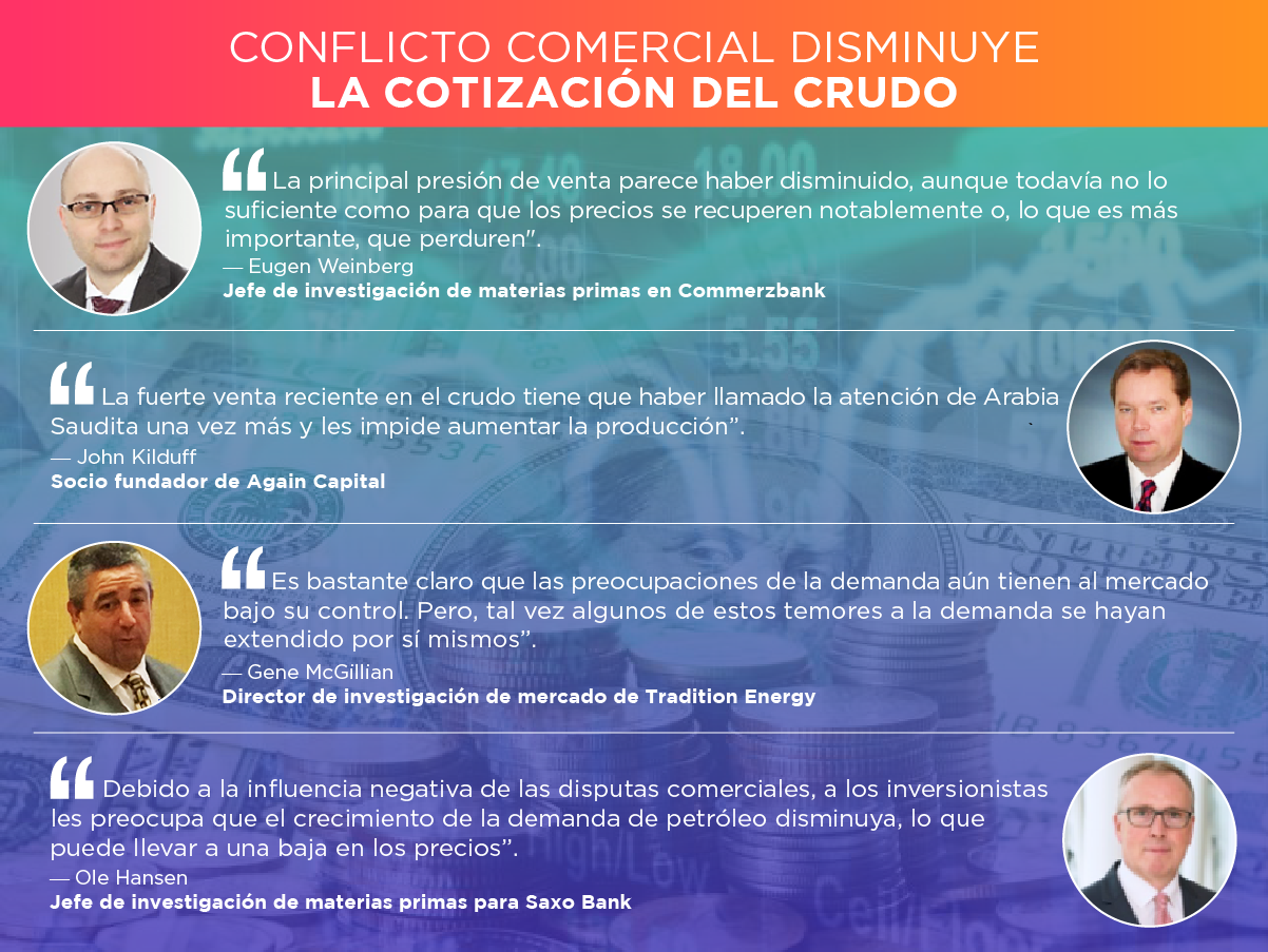 - «El miedo a la desaceleración del crecimiento económico global está afectando a todo el complejo energético, con preocupaciones de que el crecimiento de la demanda será bajista este año», dijo a Reuters Peter Kiernan, analista de energía de la Unidad de Inteligencia del Economista (EIU).