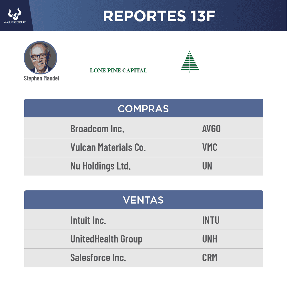 13F, revelando sus posiciones en acciones al cierre del trimestre.