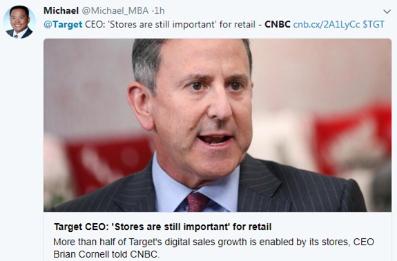 «El proceso de reinvención requiere tiempo, esfuerzo y dinero, todos los cuales deben gastarse antes de que se ganen las recompensas eventuales. En el caso de Target, la presión en la cuenta de resultados ha venido del aumento de los costos de personal, los precios más bajos y las mejoras en las tiendas y los productos». Explicó el Director General de RetailData, Neil Saunders