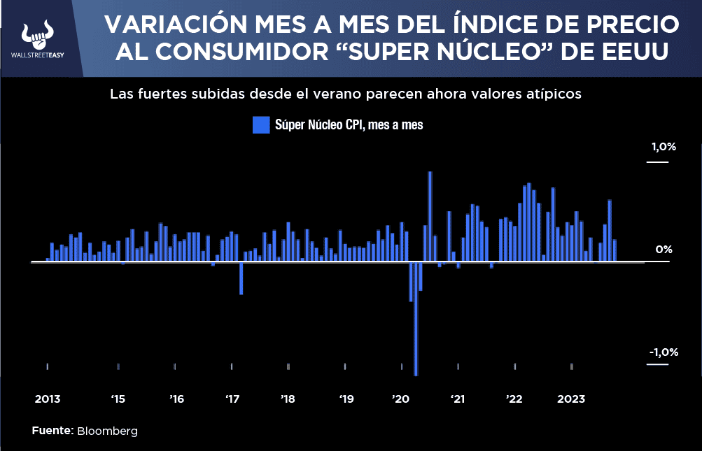 - La medida “súper núcleo” actualmente apreciada por la Reserva Federal, que solo toma en cuenta los servicios y excluye la vivienda:
