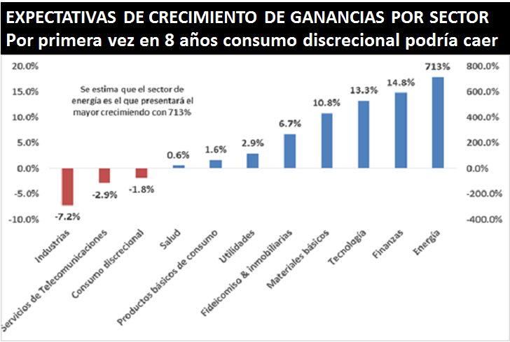 Después del sector energético, se pronostica que los siguientes con un mejor desempeño serán Finanzas, Tecnología y Materiales Básicos, que liderarán con un crecimiento de dos dígitos.