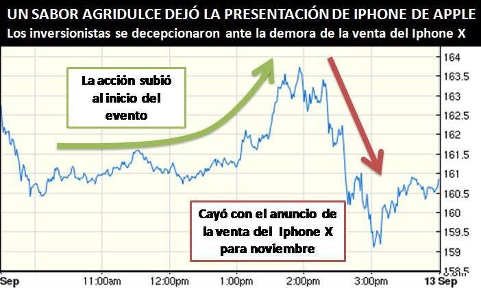 El martes 12 de septiembre, la acción de Apple (AAPL) cerró a la baja (–0,42%) después que la empresa anunciara que el lanzamiento del Iphone X sería en noviembre.