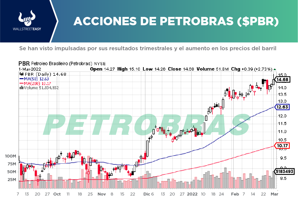Petrobras también anunció un pago total de 7,7 reales por acción en 2021, incluido un dividendo complementario propuesto de 2,8 reales por acción que se deliberará en la próxima junta de accionistas en abril. Las acciones de la firma han subido +32,6 % desde principios de año.