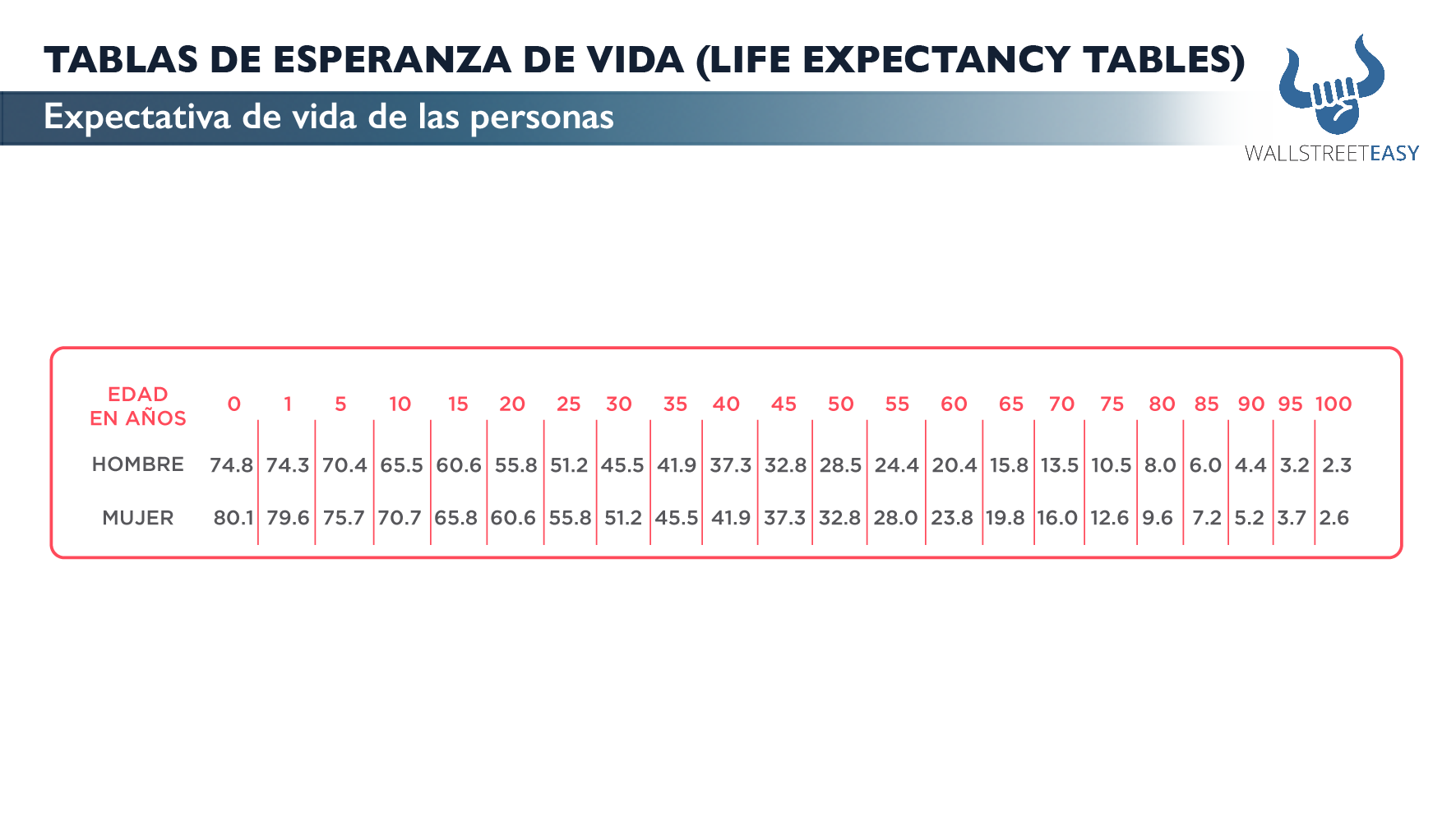 Son cuadros donde se presenta la edad estadística que se espera que una persona, o un grupo de ellas, viva.