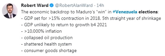 Ya antes del 20 de mayo, diversos funcionarios y políticos estadounidenses habían advertido al gobierno de Maduro que la Casa Blanca actuaría en consecuencia si continuaba con el proceso electoral, considerado ilegal y fraudulento por los factores de oposición y gran parte de la comunidad internacional.