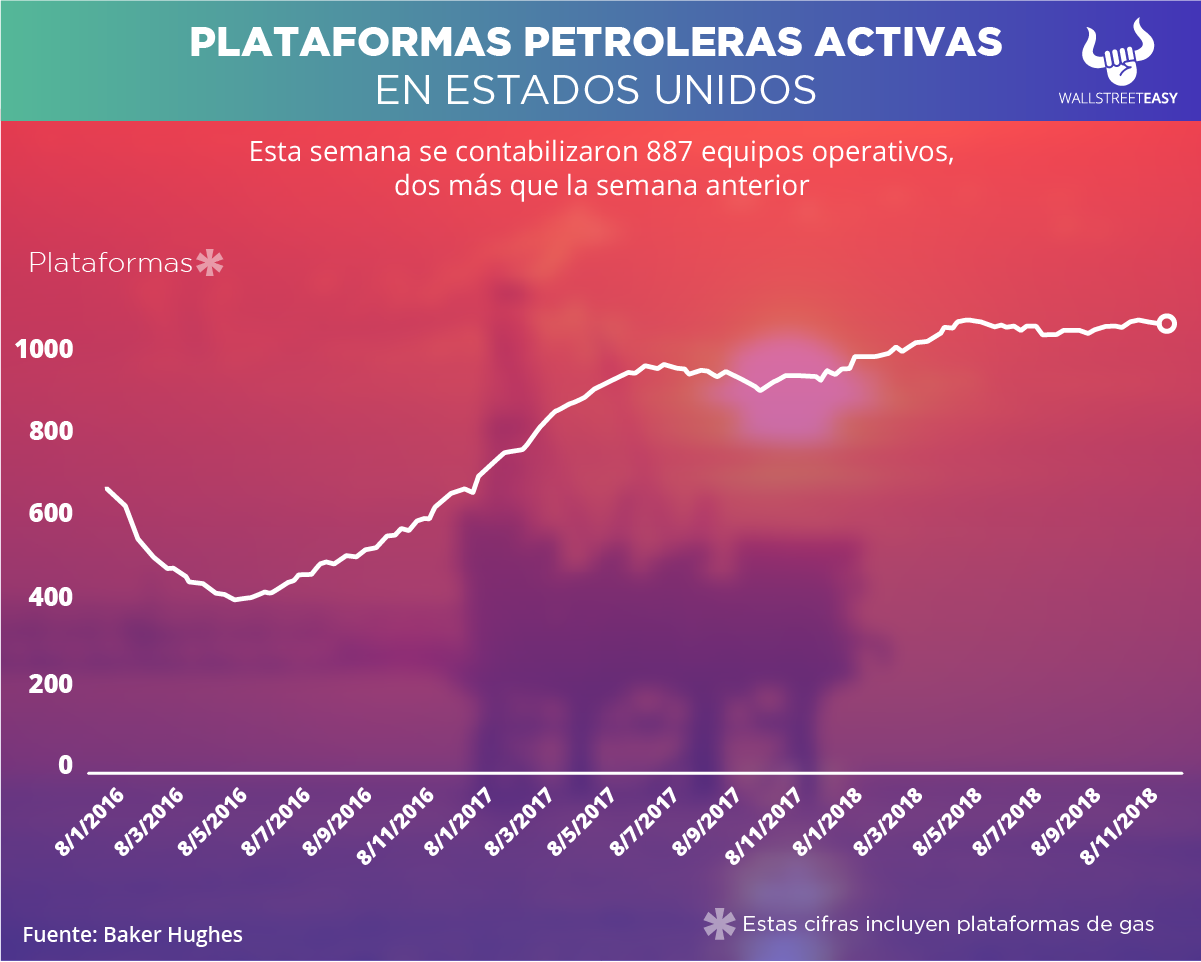 De acuerdo con información de Baker Hughes, actualmente en EEUU se encuentran 1.076 equipos activos (incluyendo los de gas). En la actividad petrolera se contabilizaron 887, dos más que la semana anterior. En las operaciones de gas hay 189 equipos operativos, cinco menos que hace siete días. Hace un año estaban activas 929 plataformas.