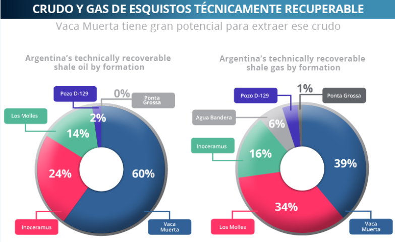 Vaca Muerta produce el equivalente a unos 62.000 barriles de petróleo al día, una fracción de los más de 5M de barriles diarios del extraído de las mejores pizarras de Estados Unidos, según datos de la EIA.