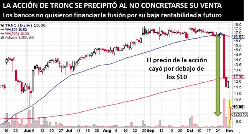 Eso hizo que la acción de TRNC se desplomara desde el jueves y cerrara hoy con un precio de $7,59, a pesar que el consenso de los analistas ubican la acción en $21.