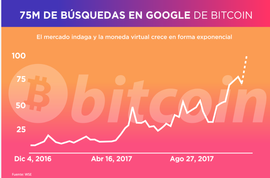 La máxima es que cuando hasta el vecino compra sin saber de qué se trata, generalmente se está ante una alerta de salida. El crecimiento de búsquedas en Google de la palabra bitcoin llegó a 75M desde que empezó el año, lo que revela el inusitado entusiasmo por esa moneda.