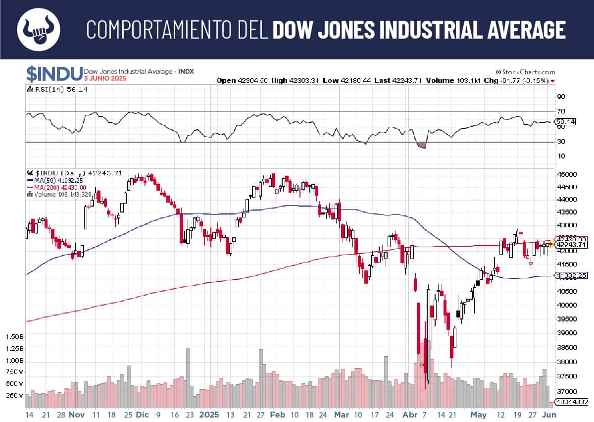 Por un lado, el Dow Jones continúa operando muy cerca de su promedio móvil, sin lograr un breakout definitivo. Por otro lado, el S&P 500 también se acerca a su promedio móvil de 50 días.